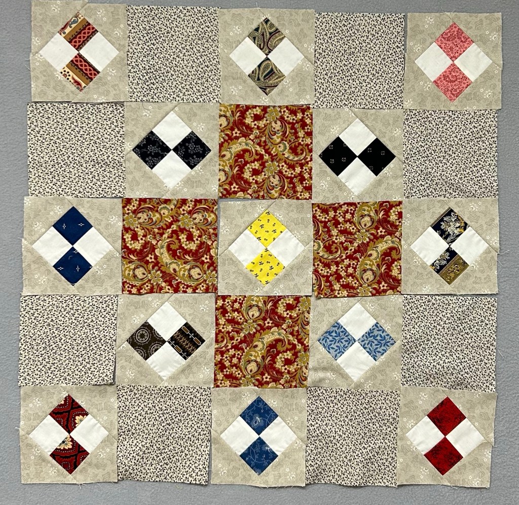 I follow your daily email posts and was intrigued by the one today. I made a quilt like with the framed four patches and it turned into one of my favorites. Pattern found on Laundry Basket Quilts as âIllusionâ.