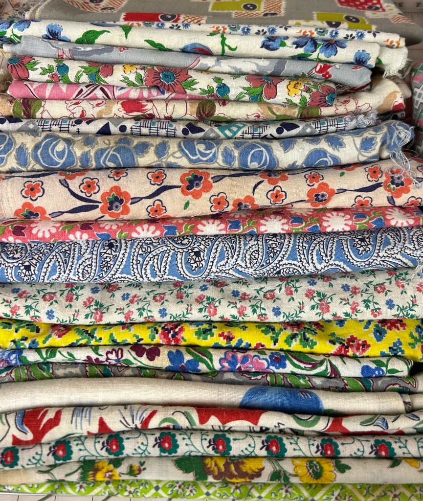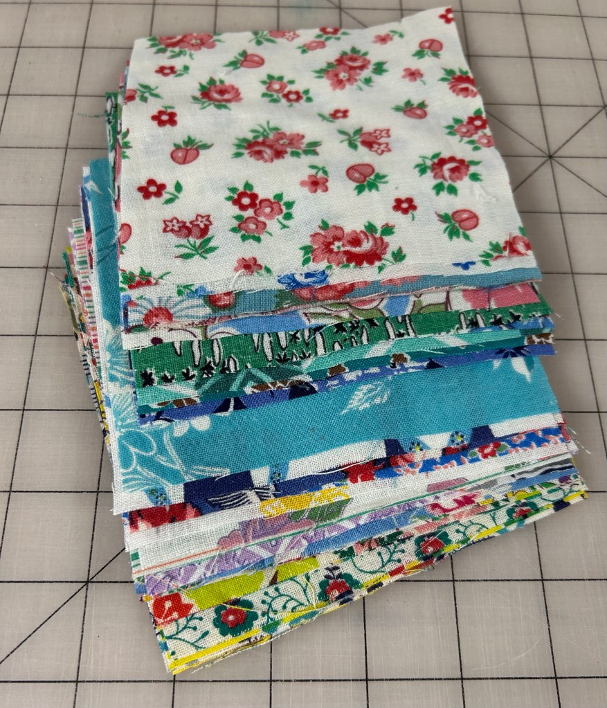 I have a couple bins like this of vintage feed sacks I’ve collected over the years. I finally decided to start cutting them up to use.