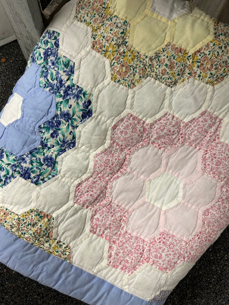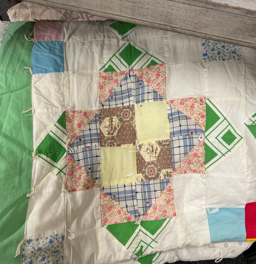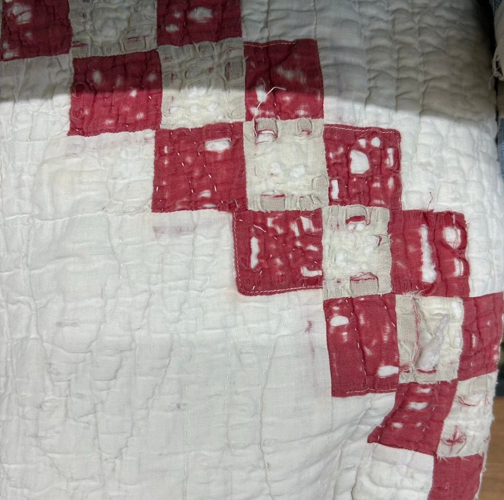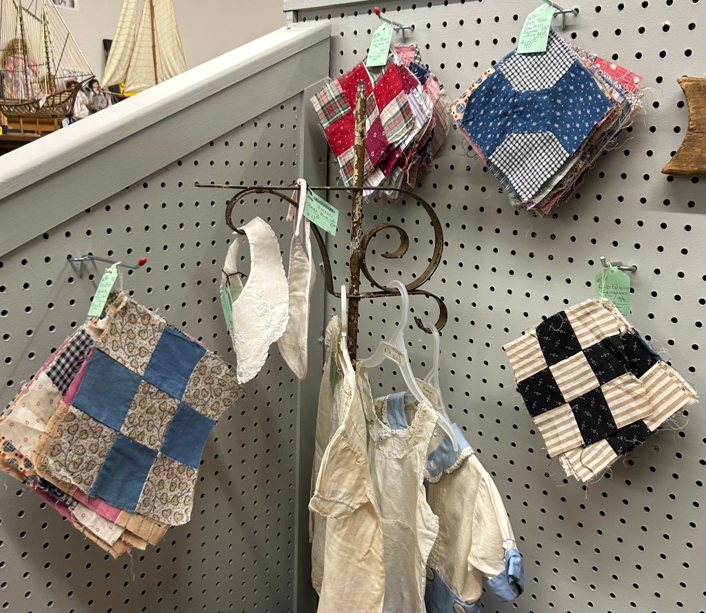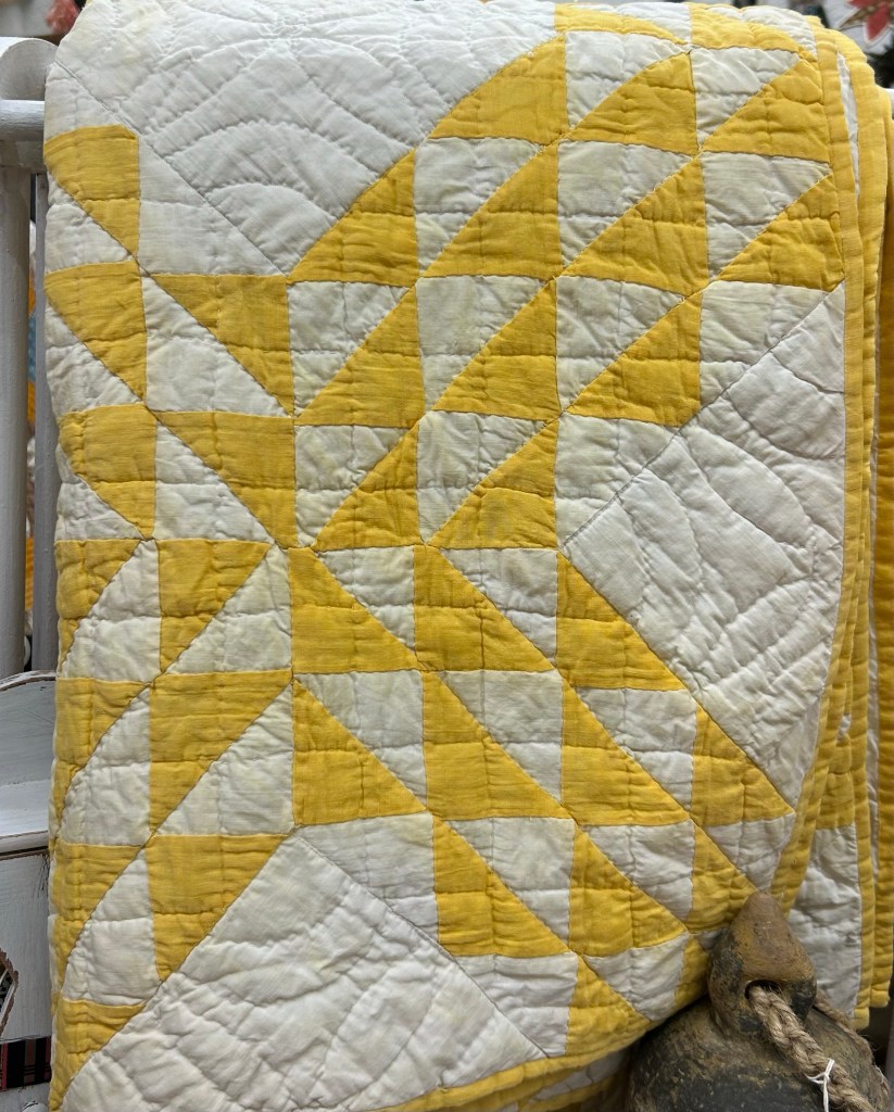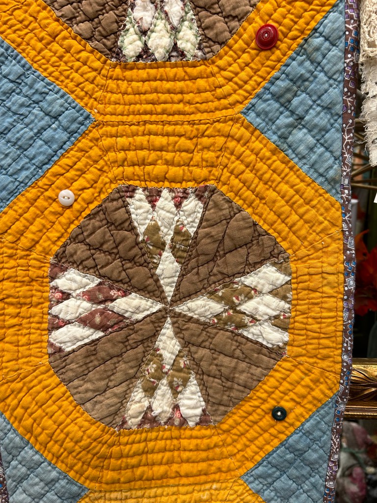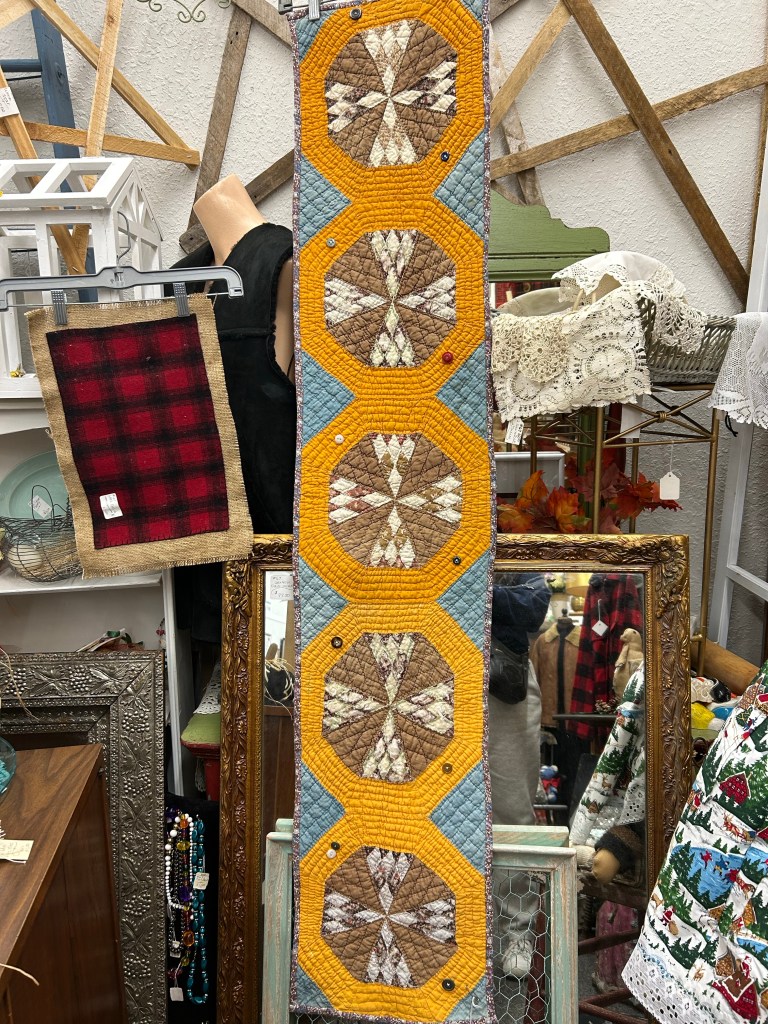 The mister and I went t9 a nearby antique mall this week. I didn’t buy anything, but it’s always fun to look. Here are the quilts things I saw.