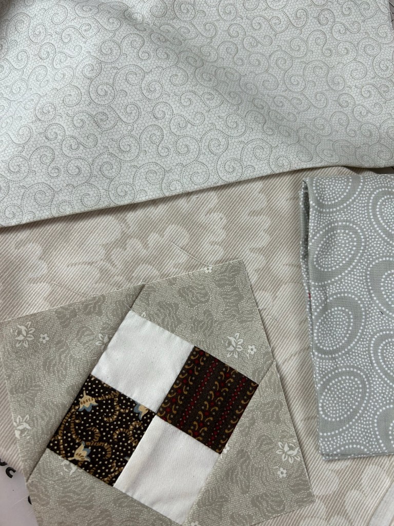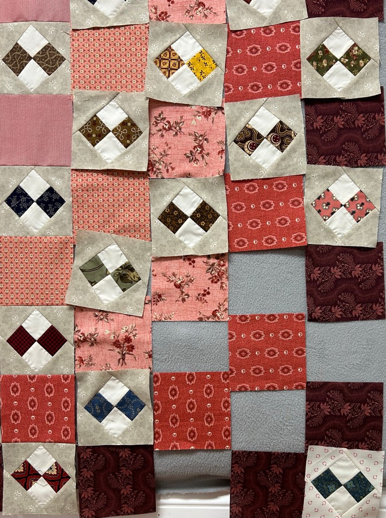 I started sewing rows together before putting everything on the design wall only to discover I still didn’t have enough blocks. And I had already used every last scrap of the gray in the corners. I do not want to put the lighter Star/moon fabric here.