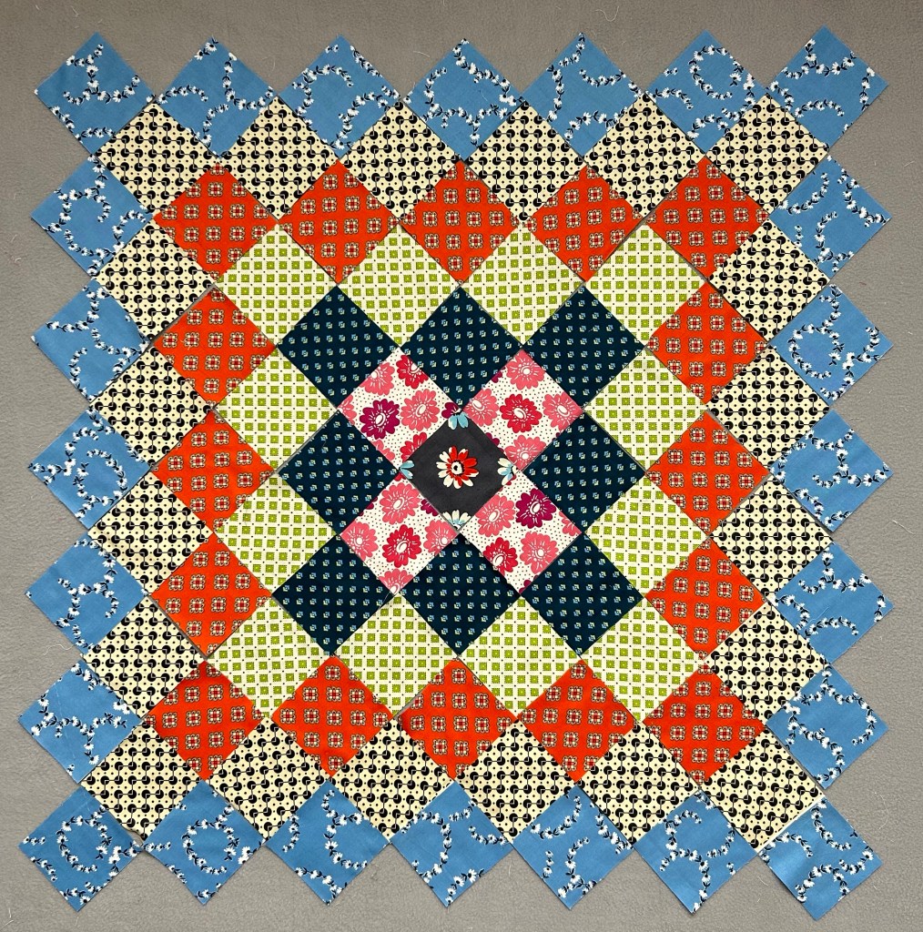 I had always heard that when the blocks were on point and the top is assembled in strips the pattern is called Boston Commons and when it is a straight setting it is Trip Around the World. Lately, I have noticed that people are calling the on point setting arrangement Trip Around the World. Do you know if there is issue on this?
