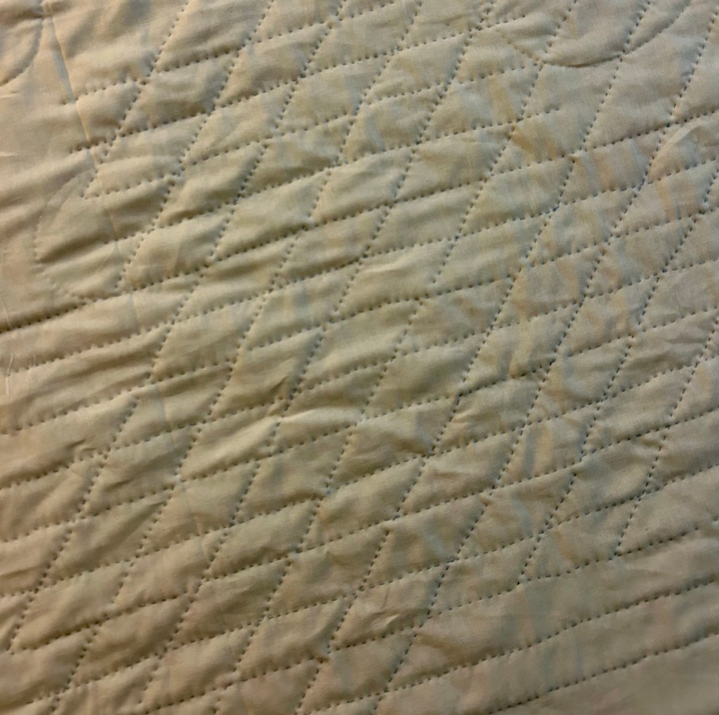 I declare to quilt hanging diamonds and the hoop just doesn’t work well for that. It is well basted, so I decided to quilt without a hoop. You can hardly see it.