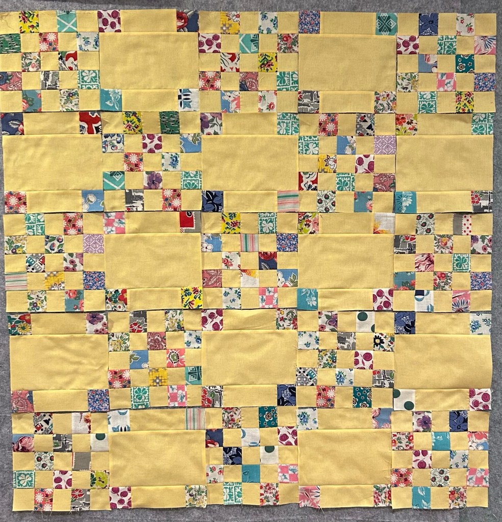 The small squares were cut 2 inches. The blocks finish at 7 1/2 inches. I need to decide if I want to add a border.