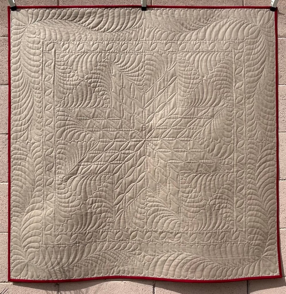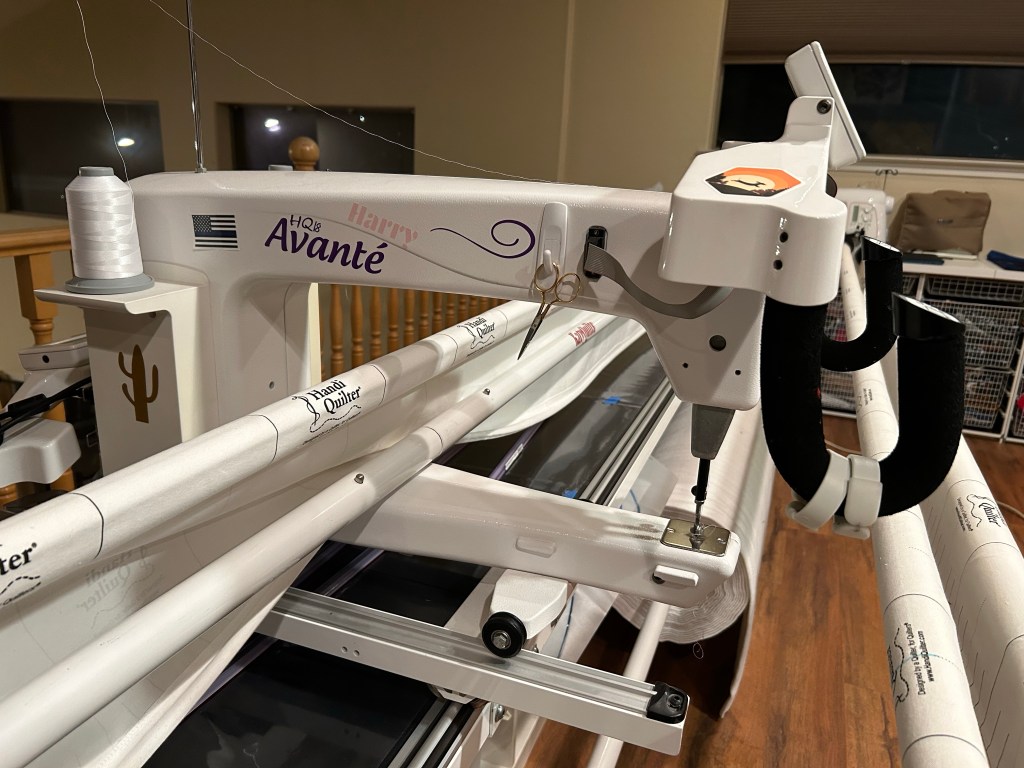 The machine is on a 12 foot frame, so you can quilt anything from a miniature quilt up to a king size quilt.