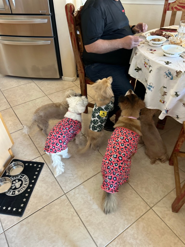 The grand dogs were here recently. I wonder why they all sit by Mr. Wonderful?
