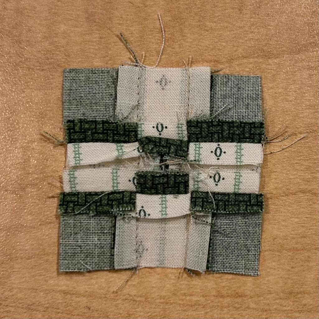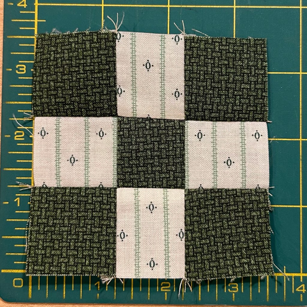 A quilter I follow on Instagram, has proposed a quilt along involving 1 1/2” finished size 9 patches. I’m intrigued, but I’m not sure I can do it. I decided to make one block that size and one in a 3” finished size. The squares look so tiny!