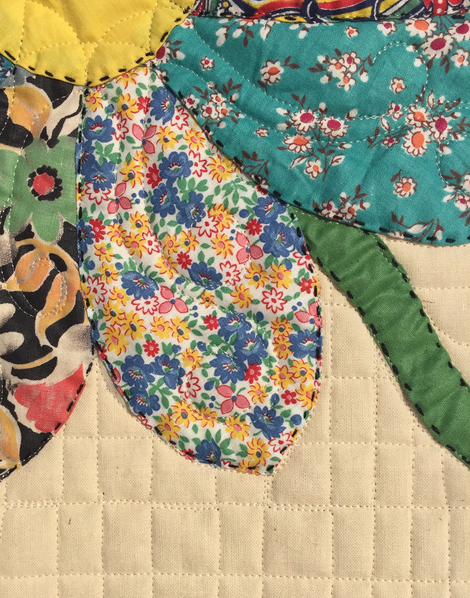 I used black pearl cotton to appliqué these blocks in a fashion that was popular in the 1930s and 40s.
