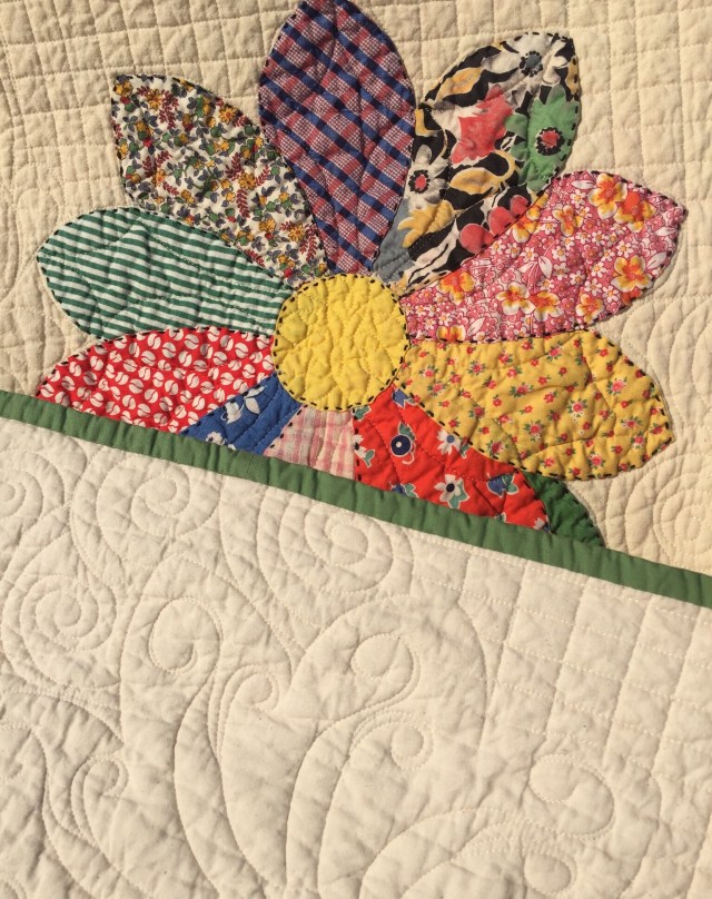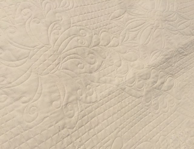 Normally I like to keep the quilting on these very traditional. But the reality is, this quilt was begun in the last century and completed in this one. No one who looks at this quilting will ever be confused about that!