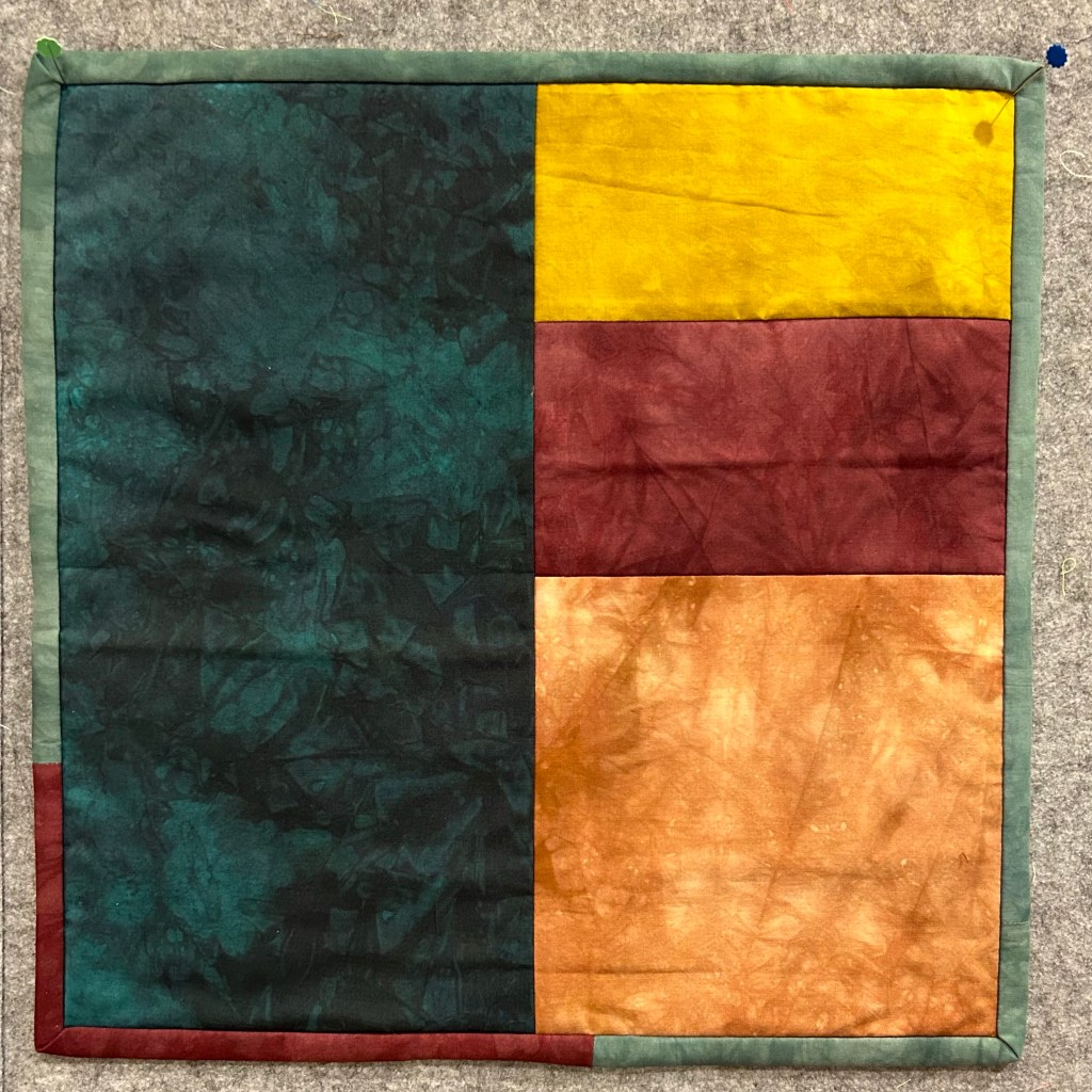 Here are my three pillow tops, all made with my hand dyed fabric.