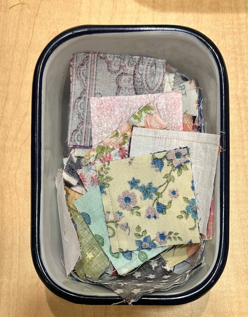 I’ve been sewing them into random pairs and tossing them in this enamelware bin.
