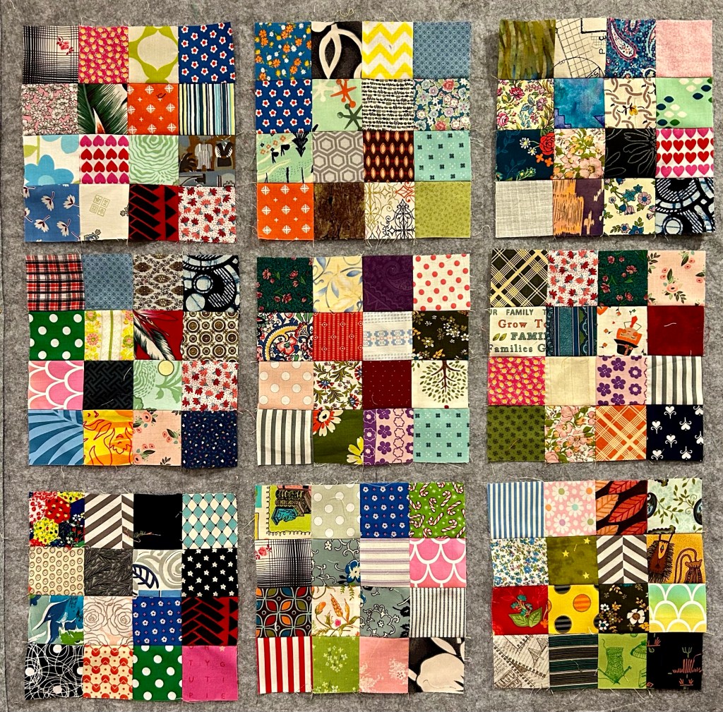 I love 9- patches, but now, 16 patches… love them too! ESPECIALLY scrappy.