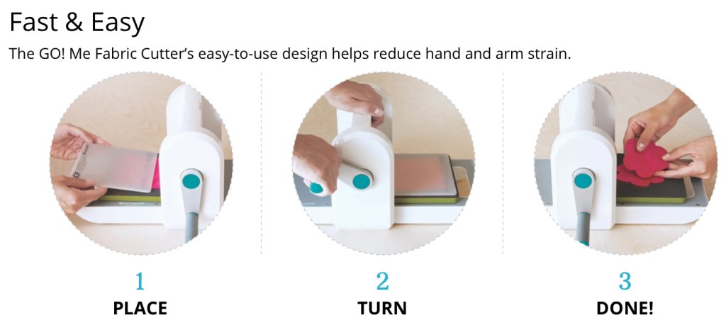 I’ve wanted a Go! Me Fabric Cutter for the longest time. It would be so handy to ‘grab and go’ to share the fun at a friend or relative’s house and doesn’t take up much space at all!