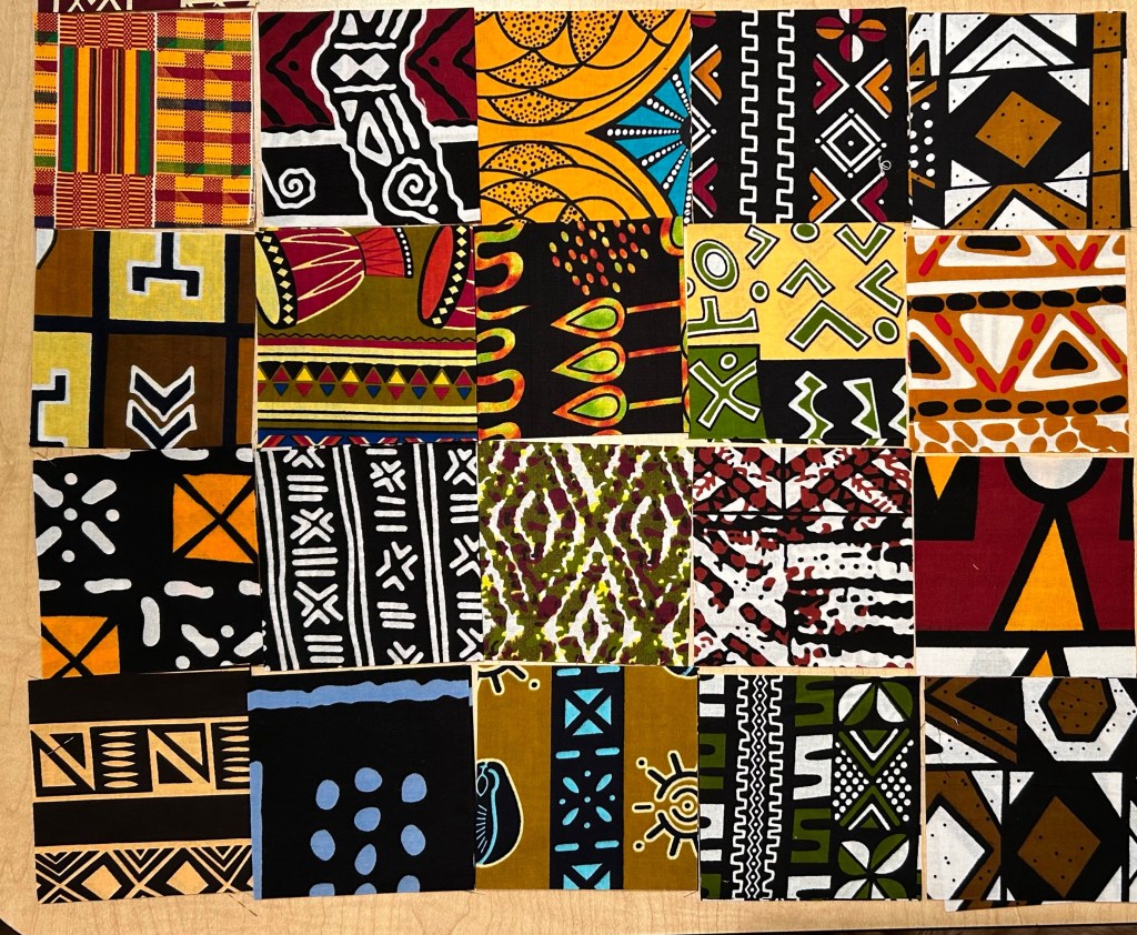 I started cutting some of my African fabrics into charms. I saw a fun quilt on Instagram using these.