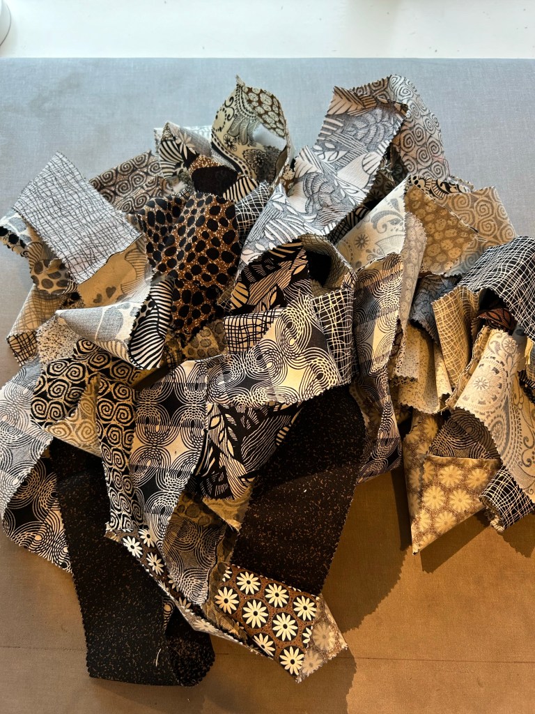 I was needing some mindless sewing, so I started digging around and found these bits and pieces from an old jelly roll.