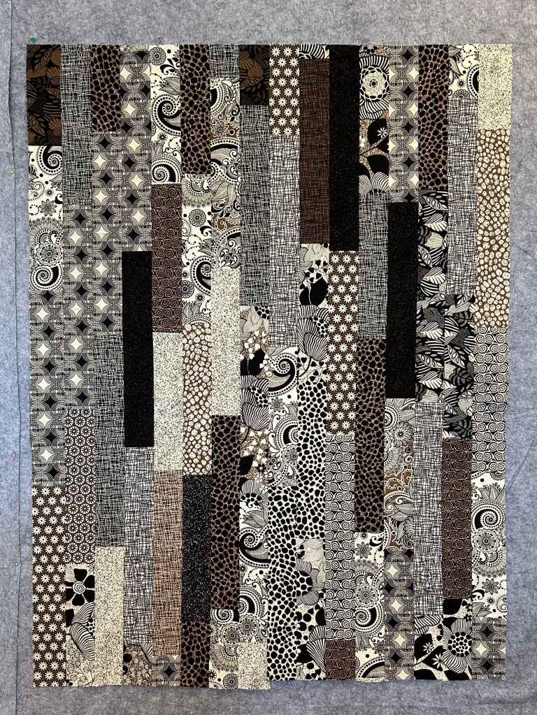 Then I sewed them together jelly roll race style and ended up with this.