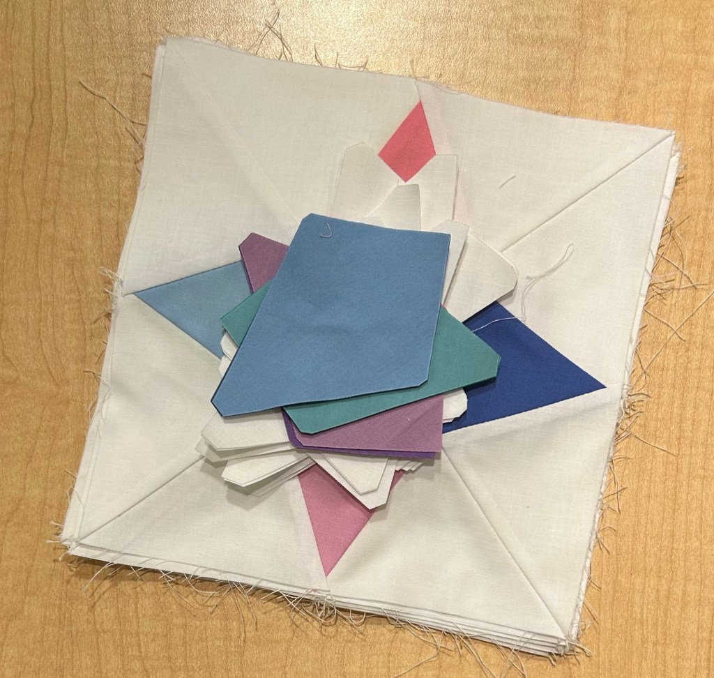 Since the quilt was going to be sent to them, I cut out extra blocks to make one for myself. Apparently, I had a case of brain fog that day. I got my pieces home to Michigan and left the die in Arizona.
