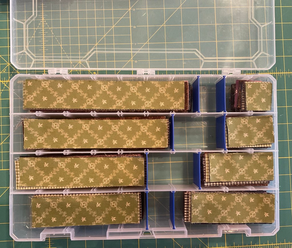 Very resourceful! At one time, there was something akin to this called a “worm bag” (also from the fishing section). It had see-through zippered compartments that were perfect for threads, notions, hand piecing or appliqué.