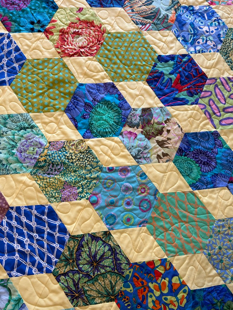 This quilt is lovely! I know what you mean – I get so tired of looking at the same quilt until it is complete. It’s good to be done!