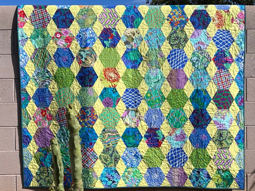 It finished at 80 by 90 inches. I should have added borders to make it queen size, but I was just sick of it.