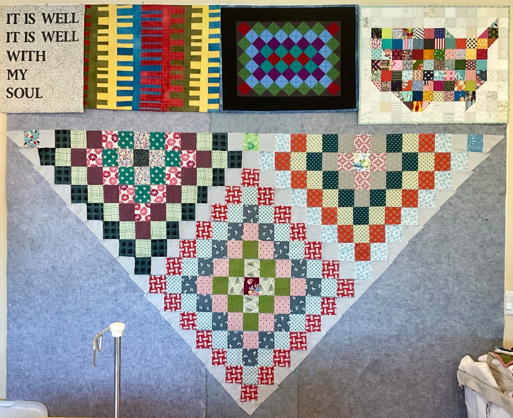 It’s coming along, albeit, slowly. The last section is laid out on the design wall.