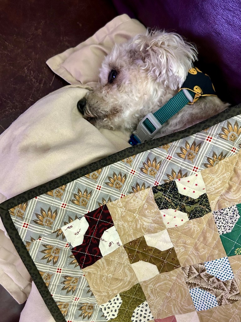 My little bow tie quilt is done and Willy seems to enjoy it!