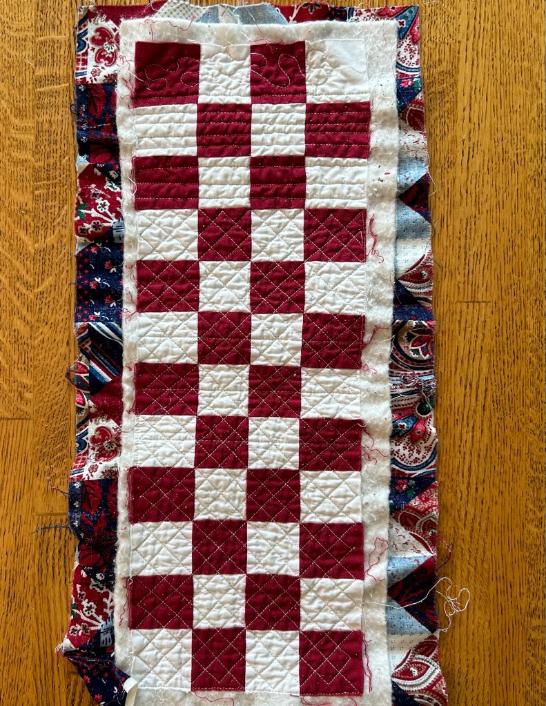 I used this little piece to practice some machine quilting ideas for a secret project. I washed it when I was done to see how it would look.