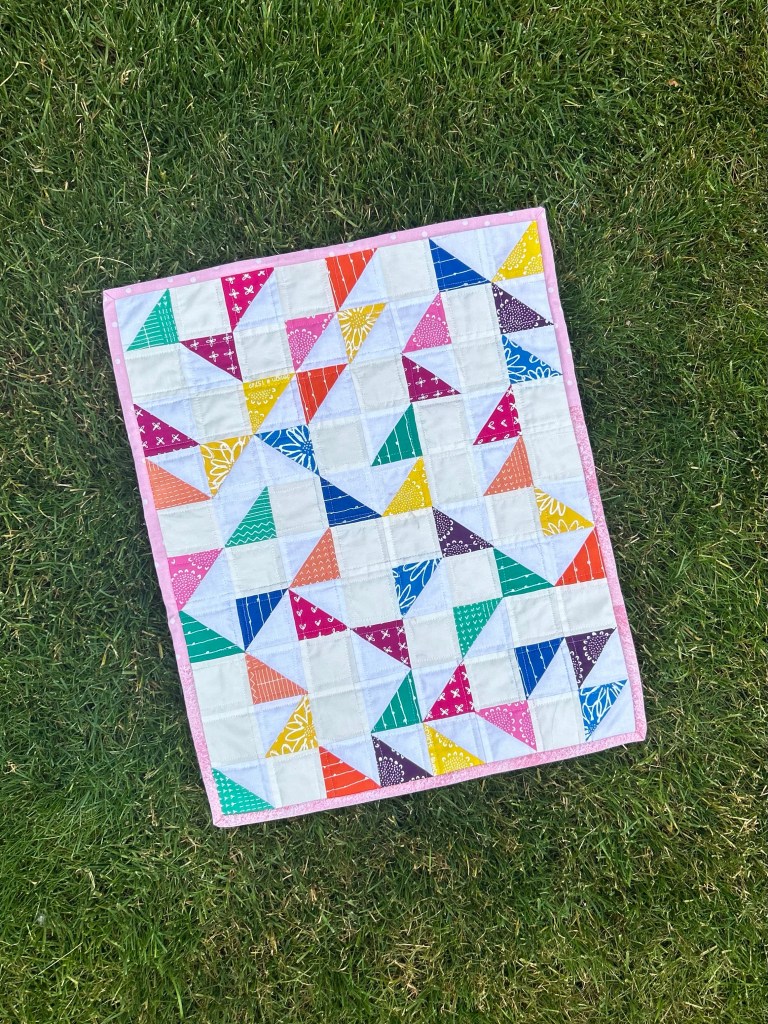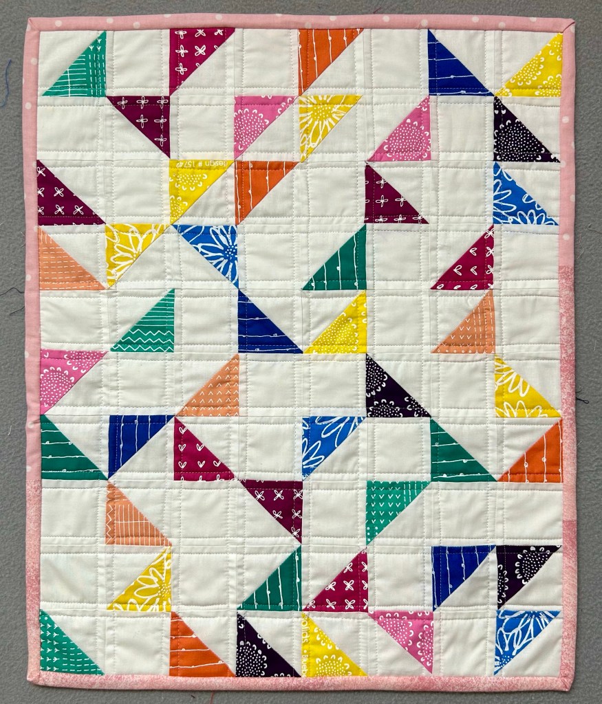 Love this little quilt using up your scraps and the Backing is bright and cheery !