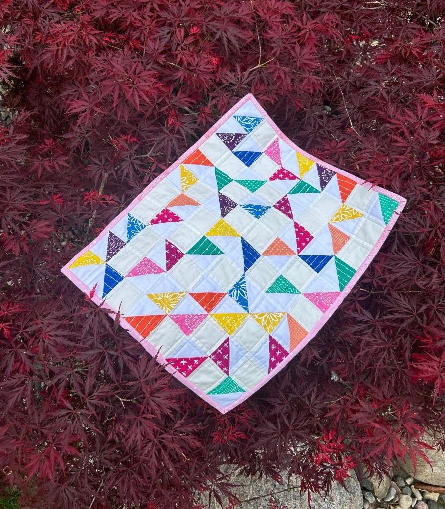 I didn’t think ahead when I cut my HSTs out. I cut the squares later and it wasn’t until I took this little bit outside for photos that I noticed the whites didn’t match.