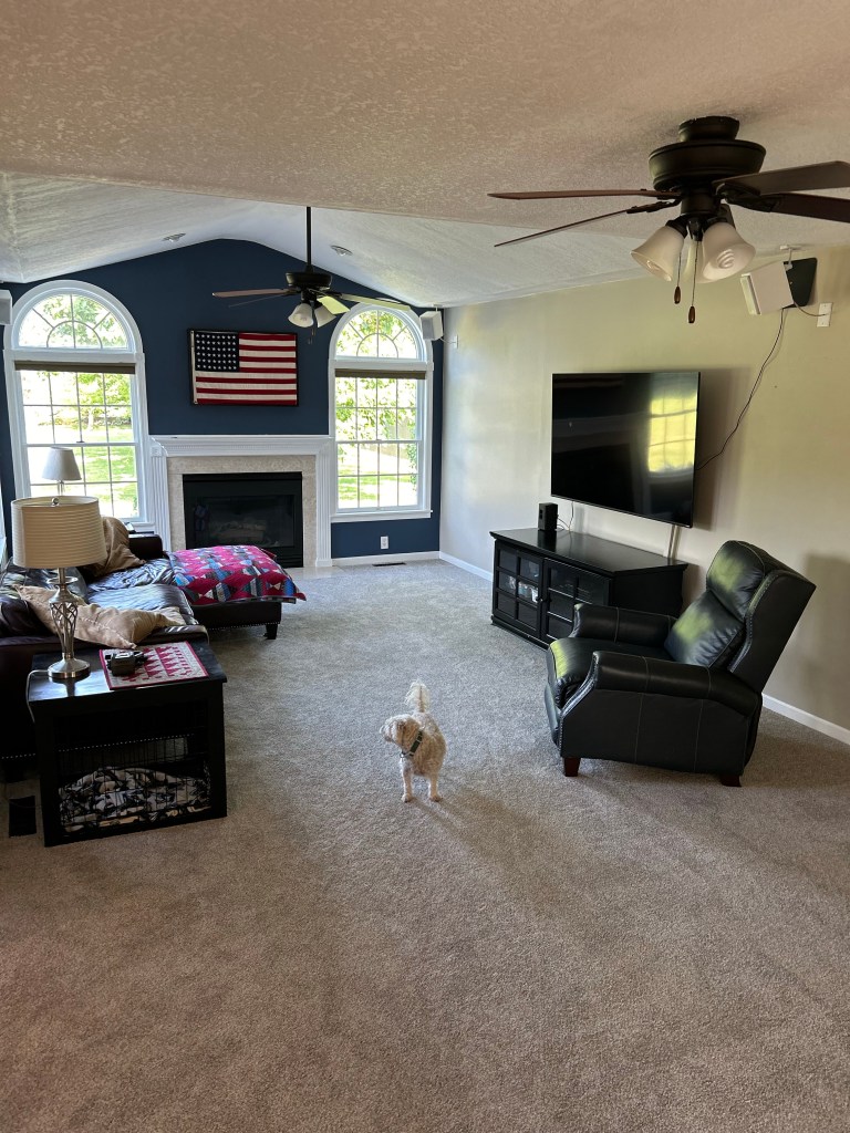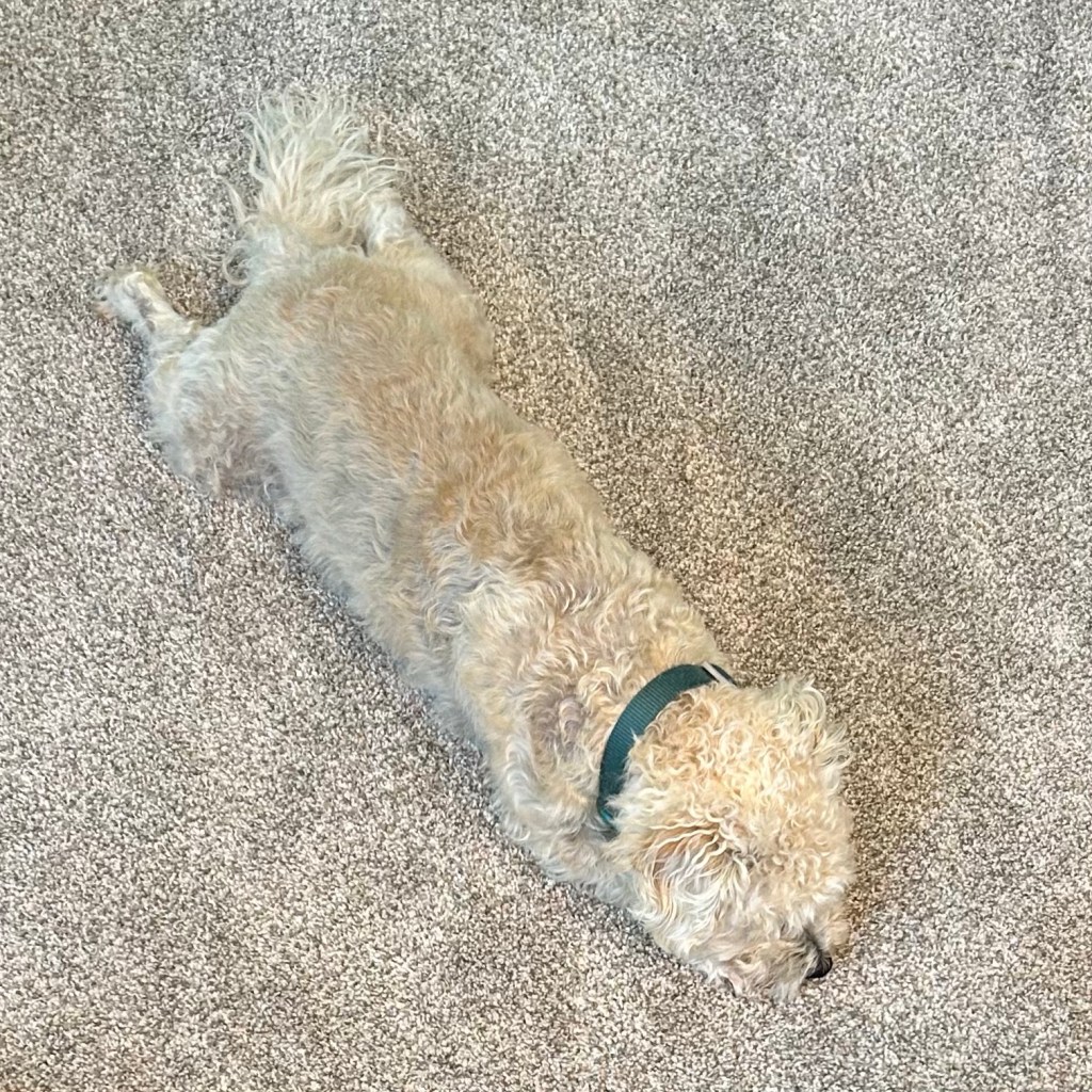 We had a pale apricot poodle, who nearly disappeared on the oatmeal-colored carpet we had.