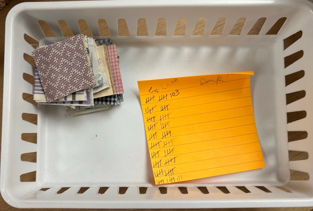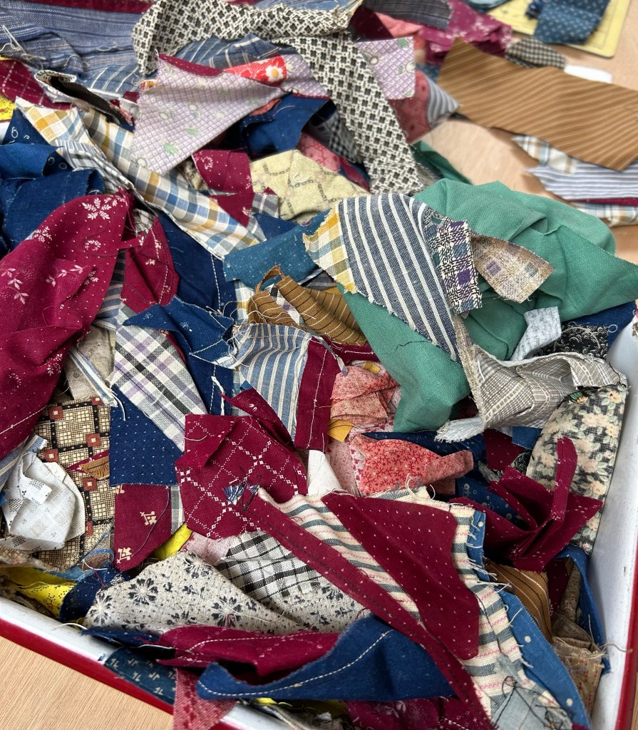 I decided to see if I could come up with what I needed to make the blocks in this bin of vintage scraps.