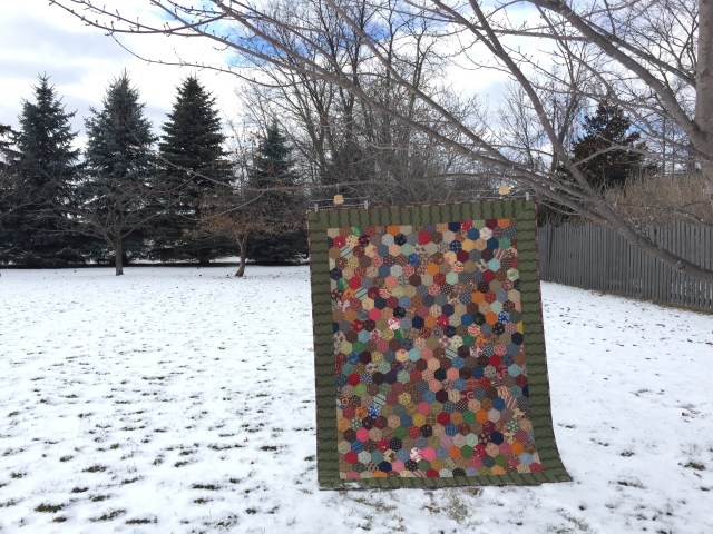 It’s done! I started piecing this top back in 2013. It is mostly hand pieced, but I did machine sew a few seams.