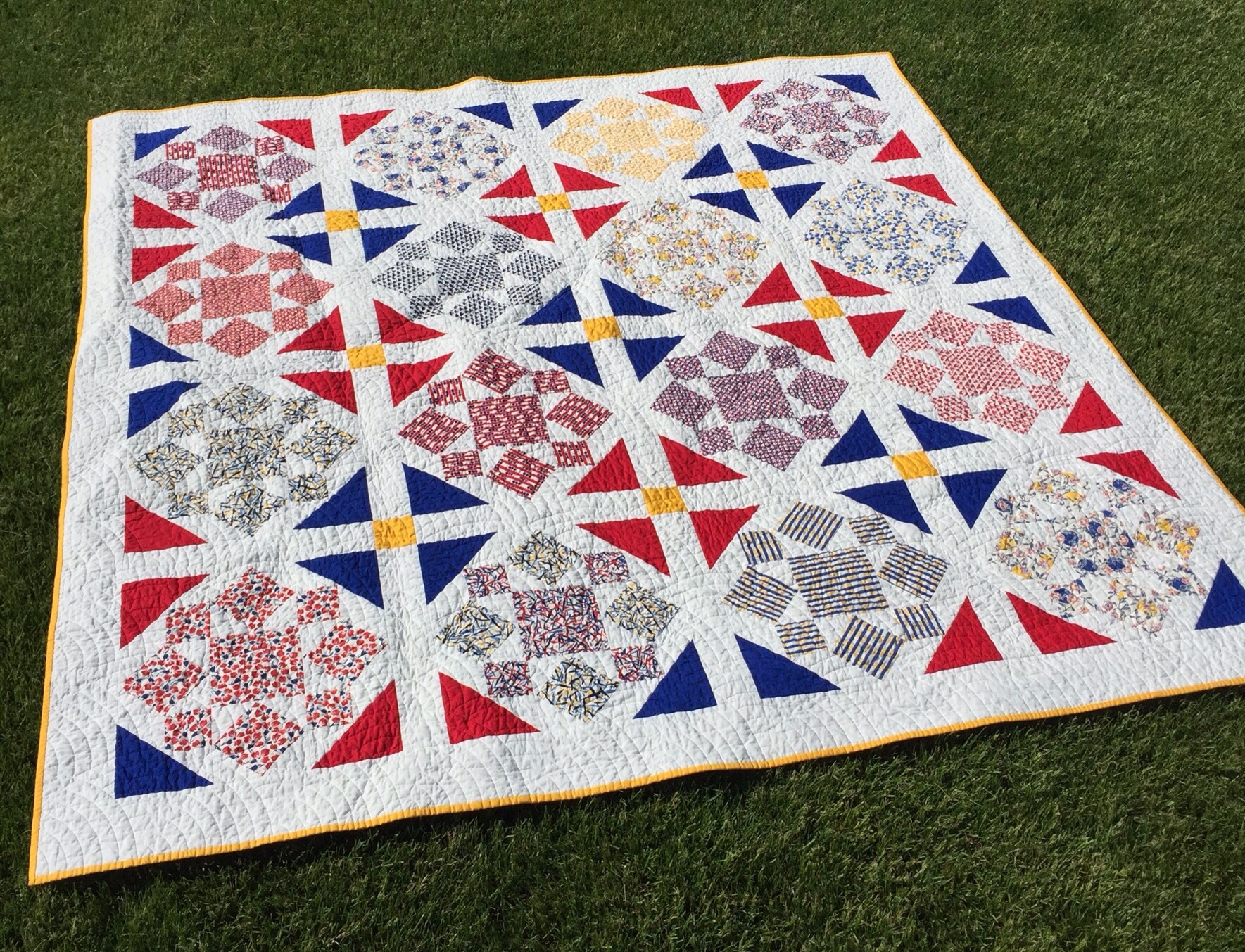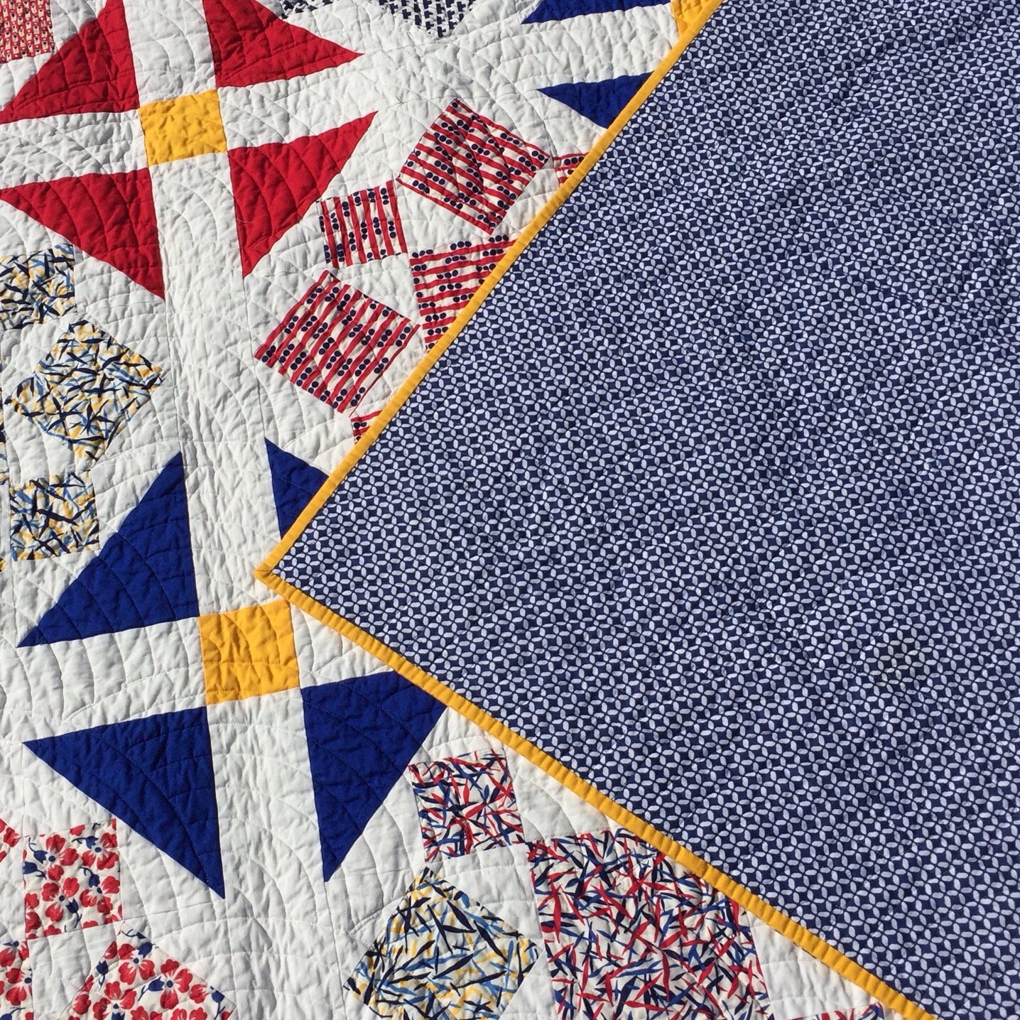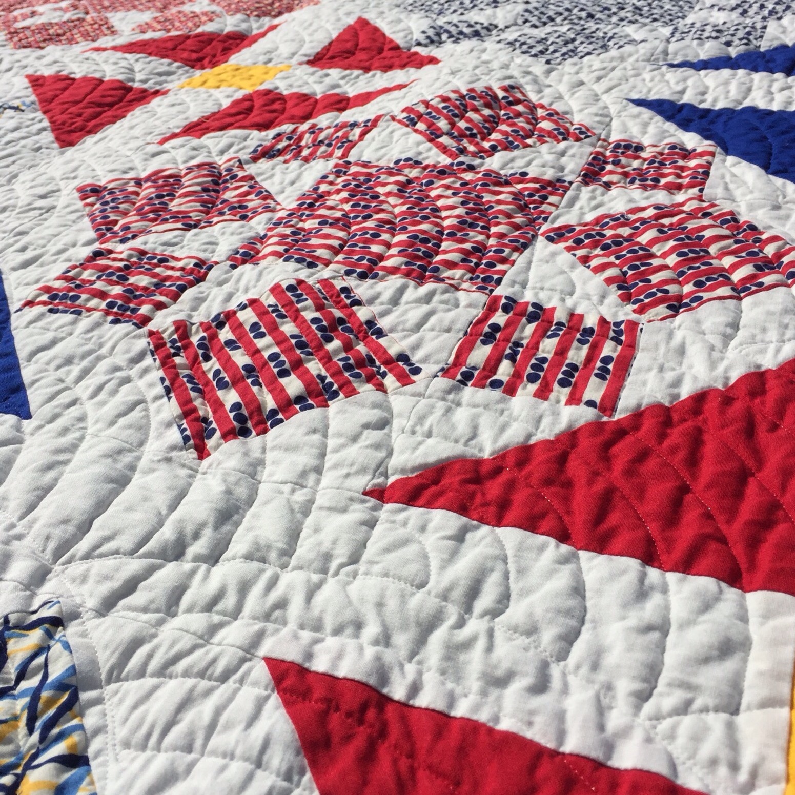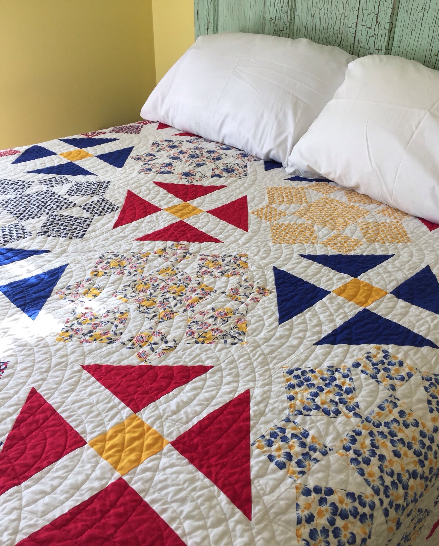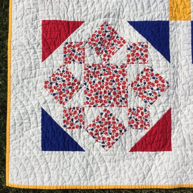 I immediately loved it, but it took me a while to find the perfect pattern for it. I finally settled on this traditional Rolling Star pattern.
