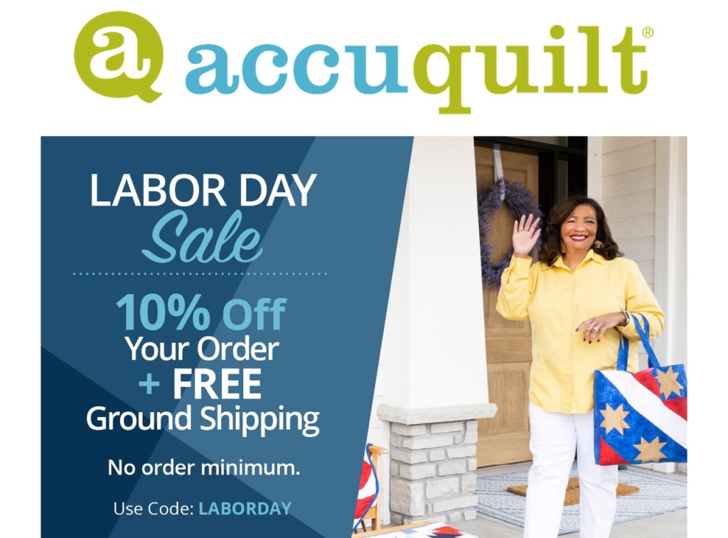 AccuQuilt has 10% off your order and free shipping on ANY size order with the code LABORDAY.