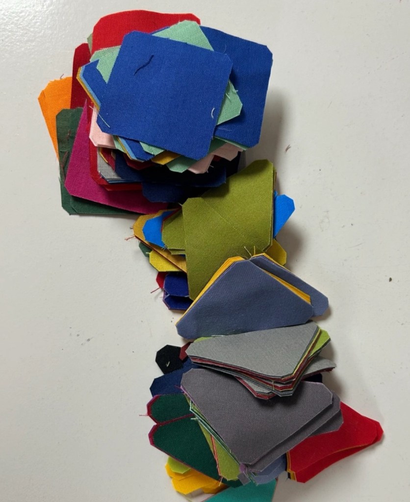 While sitting at the laundromat, I sorted my pieces and clipped them together into block kits.