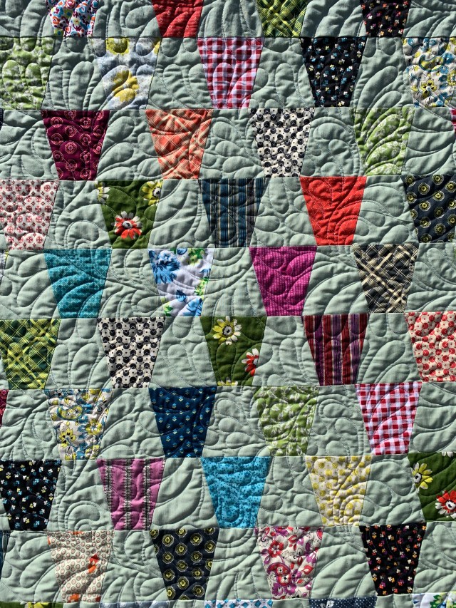Wendy has provided me with the best name for this quilt, Tumbler Triumph! It caused plenty of trouble, but it’s finally done.