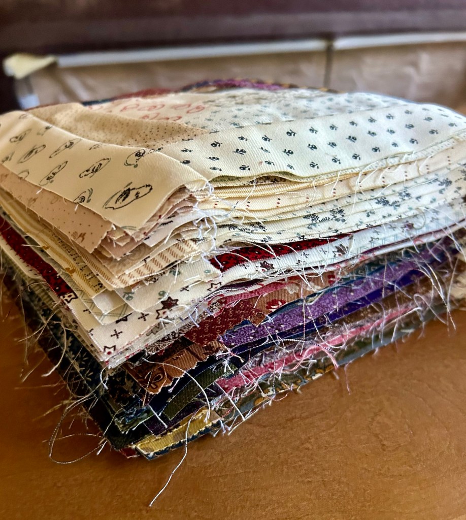 I’m so glad to be done making these blocks! I ended up with 97. It seems I lost a few pieces along the way.