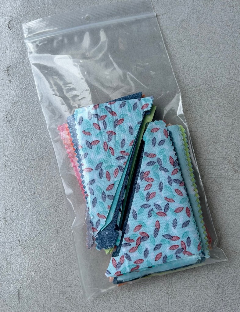 I pitched the tiny strips, but the triangles are saved for a future project.