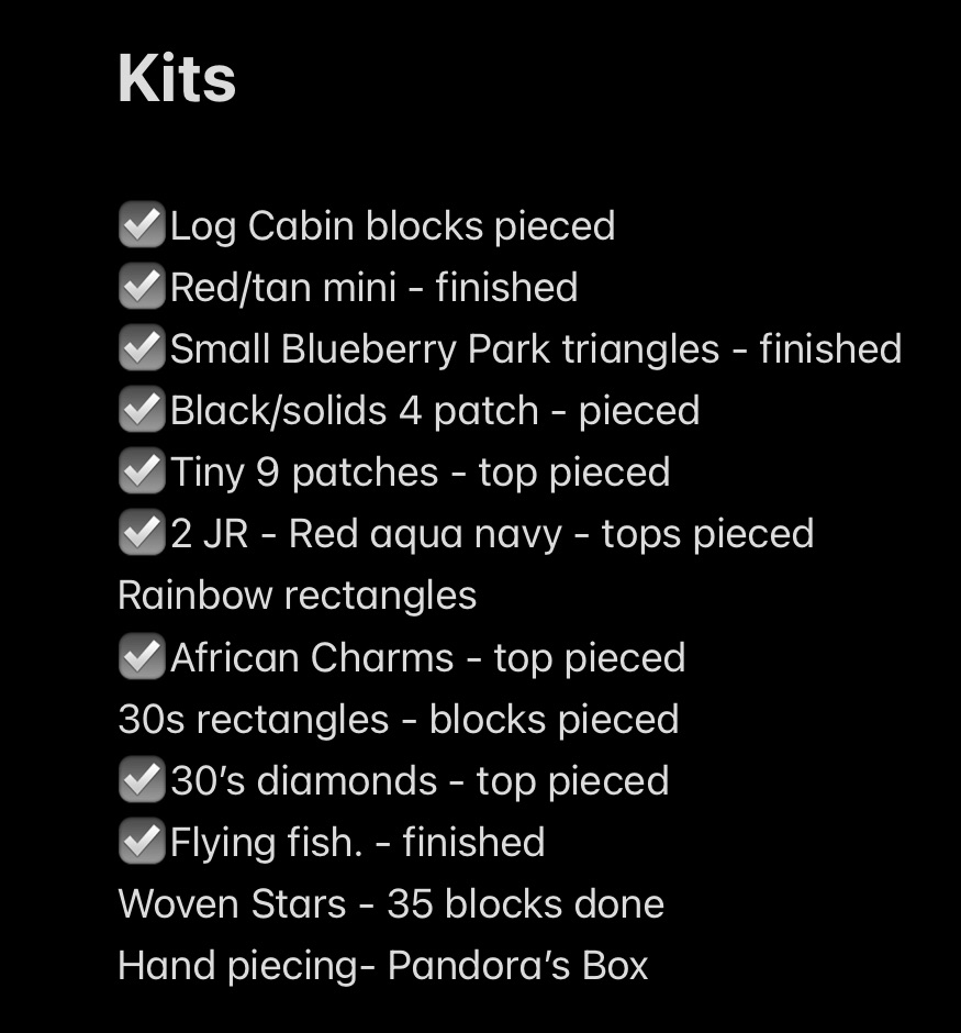 This is a list of projects that I kitted up before leaving AZ last spring. I didn’t finish everything, but I did several projects that weren’t even on the list.
