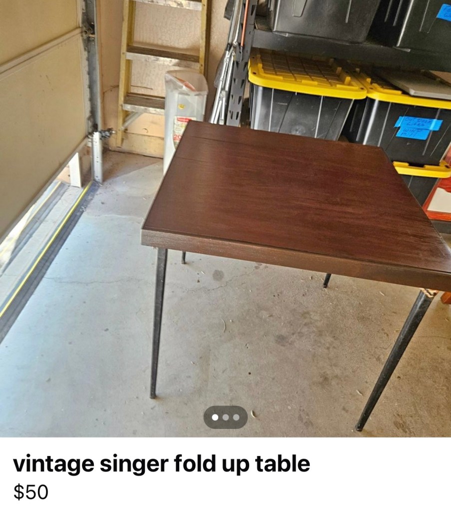 I saw this ad on FB Marketplace recently. It’s a card table for a Singer Featherweight!