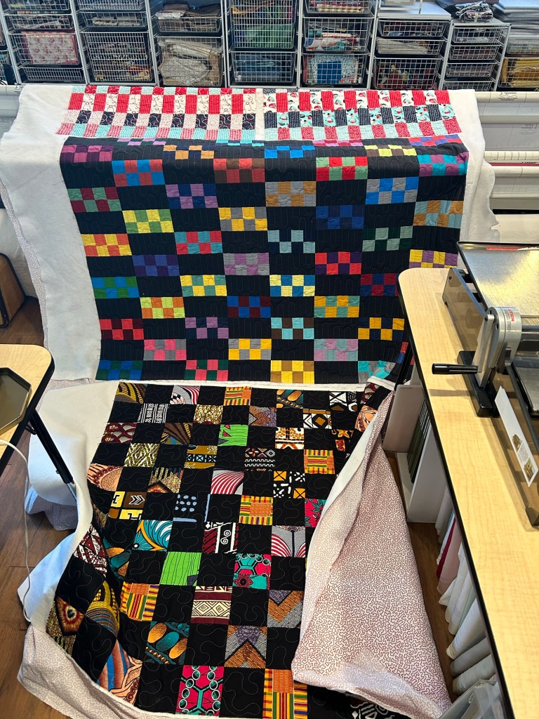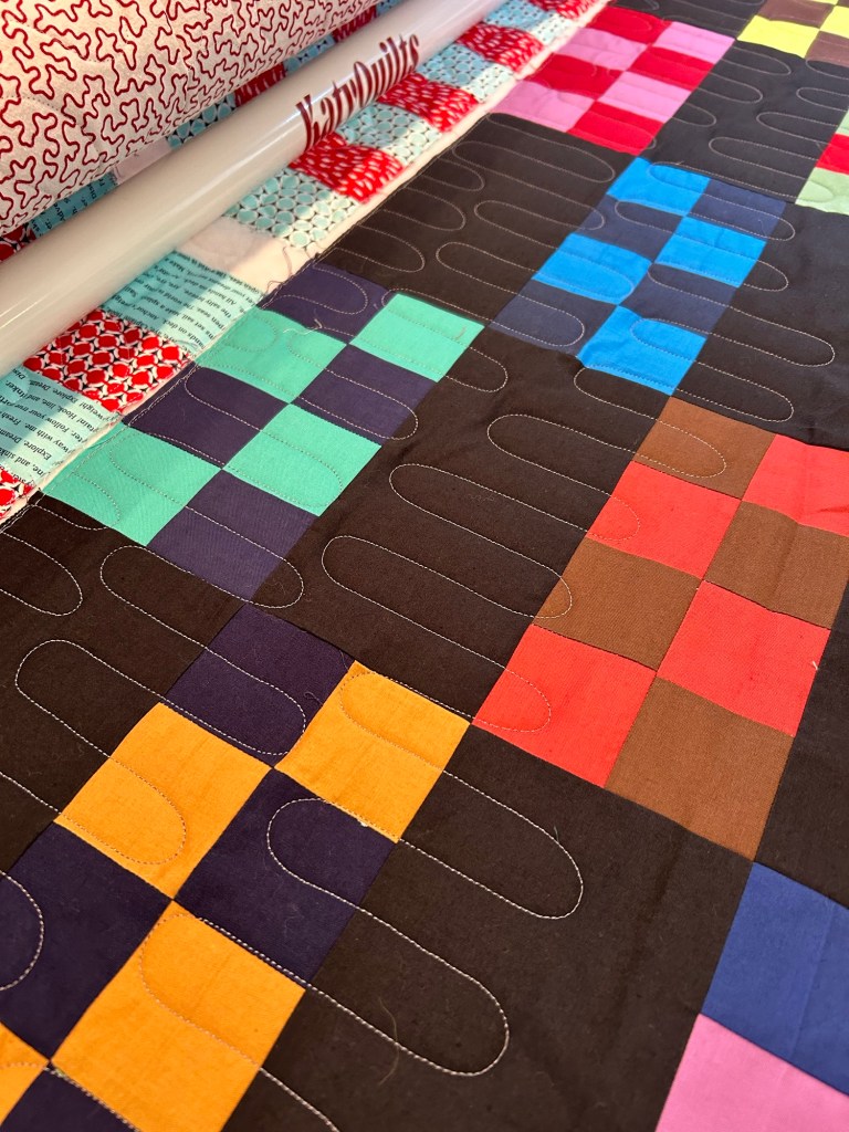 Here is a peek at the quilting on the next quilt loaded on the same backing.