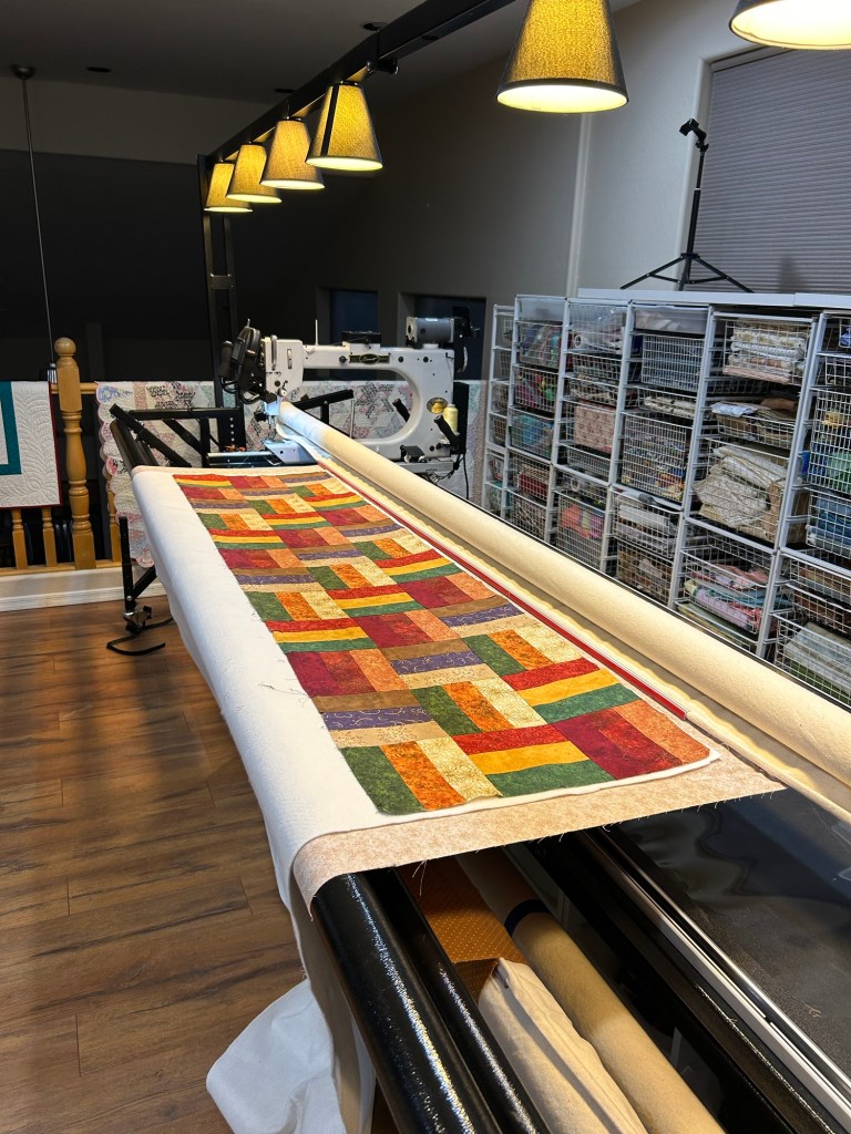 My sweet MIL pieced this beautiful table runner. She wasn’t happy with her machine quilting and I offered to quilt it for her.