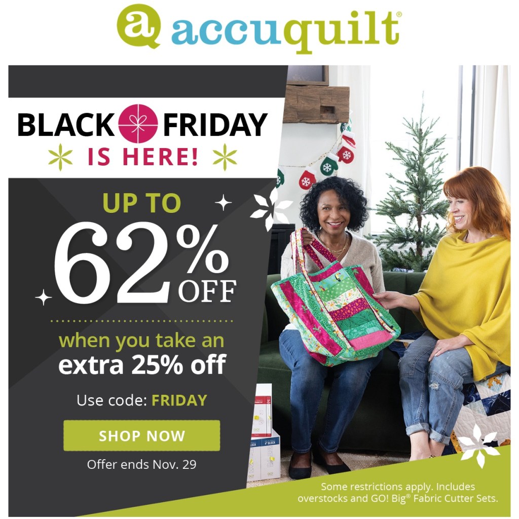 AccuQuilt also has incredible deals! Seriously, you can get up to 62% off when using code FRIDAY to get an extra 25% off! Offer ends at midnight Central Time, so don’t wait. 😊