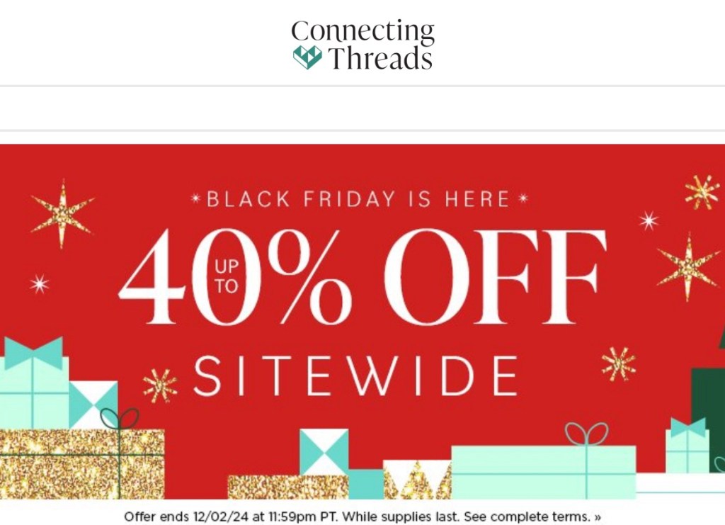 Connecting Threads Has up to 40% off site wide until December 2nd. They already have great prices!
