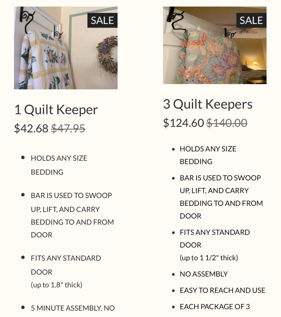 And last, but certainly not least, Quilt Keeper also has great deals on their over the door quilt hangers and cascades. These make fantastic gifts.