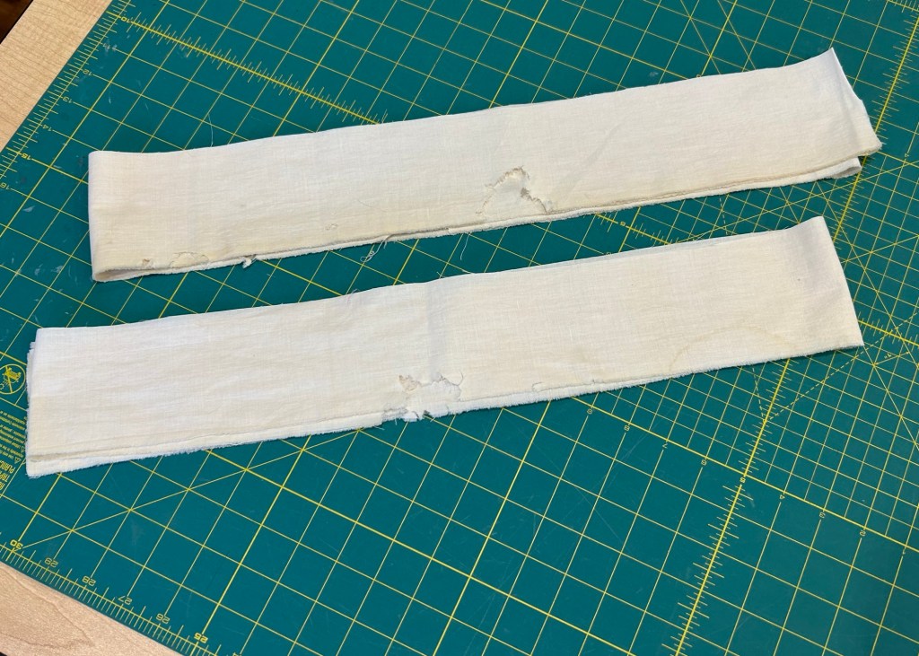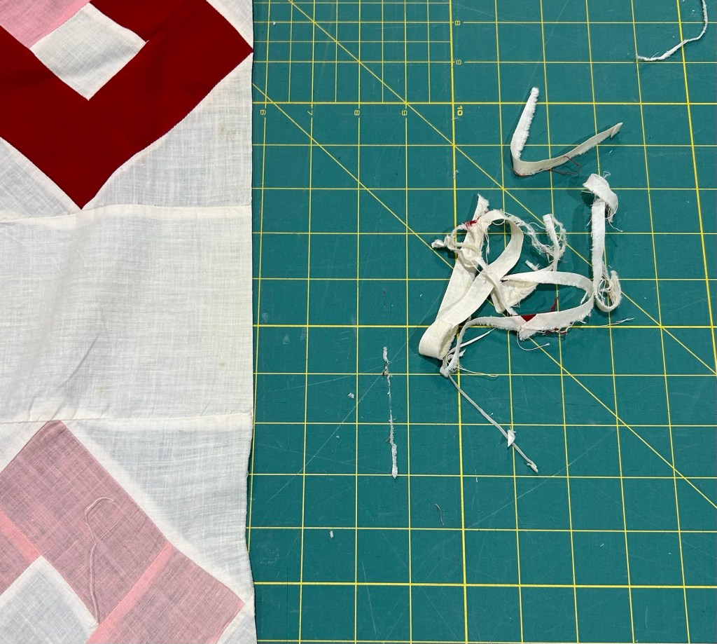 First, the edges had been chewed. That was a pretty easy fix as I trimmed the borders down by a lot. This gave me enough to add borders on the two sides that didn’t have any.