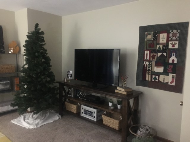 Long time readers may remember this sorry quilt. If you want the back story, you can find it here. It’s a sad looking quilt and hung in my bathroom every Christmas for many years. Last year, I gave it to Daughter #3 when she told me how much she loved it.