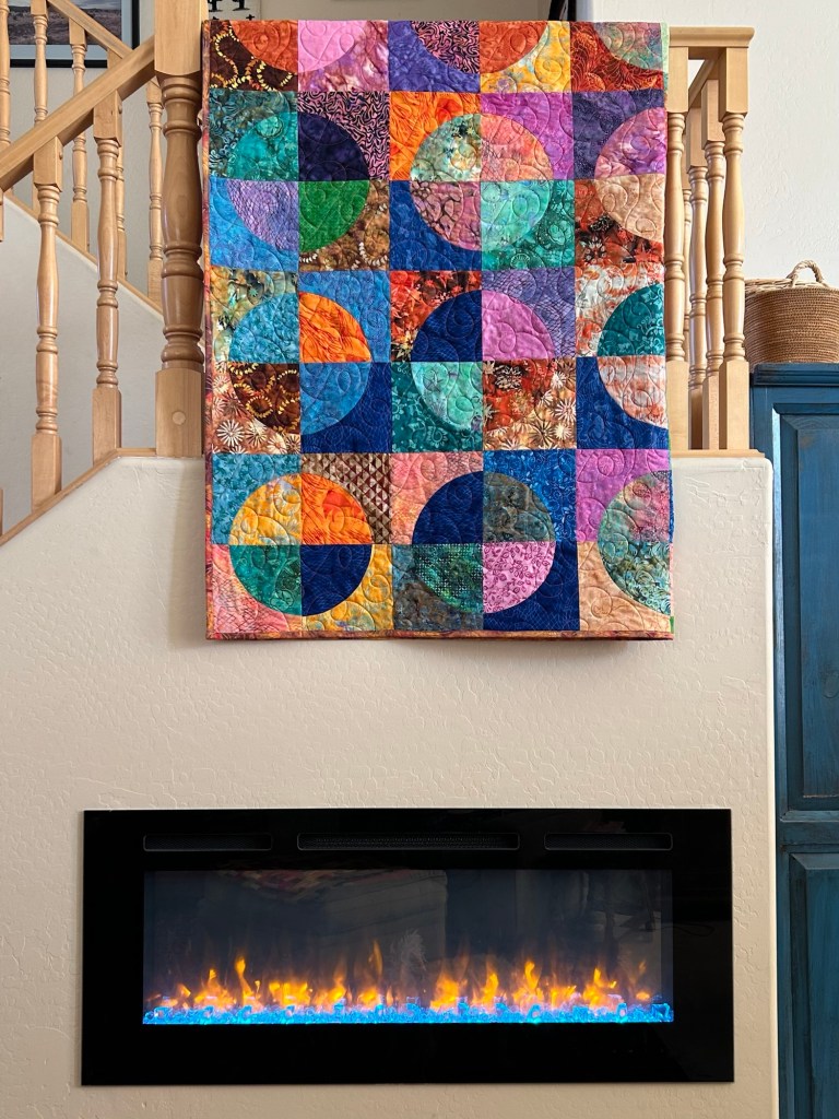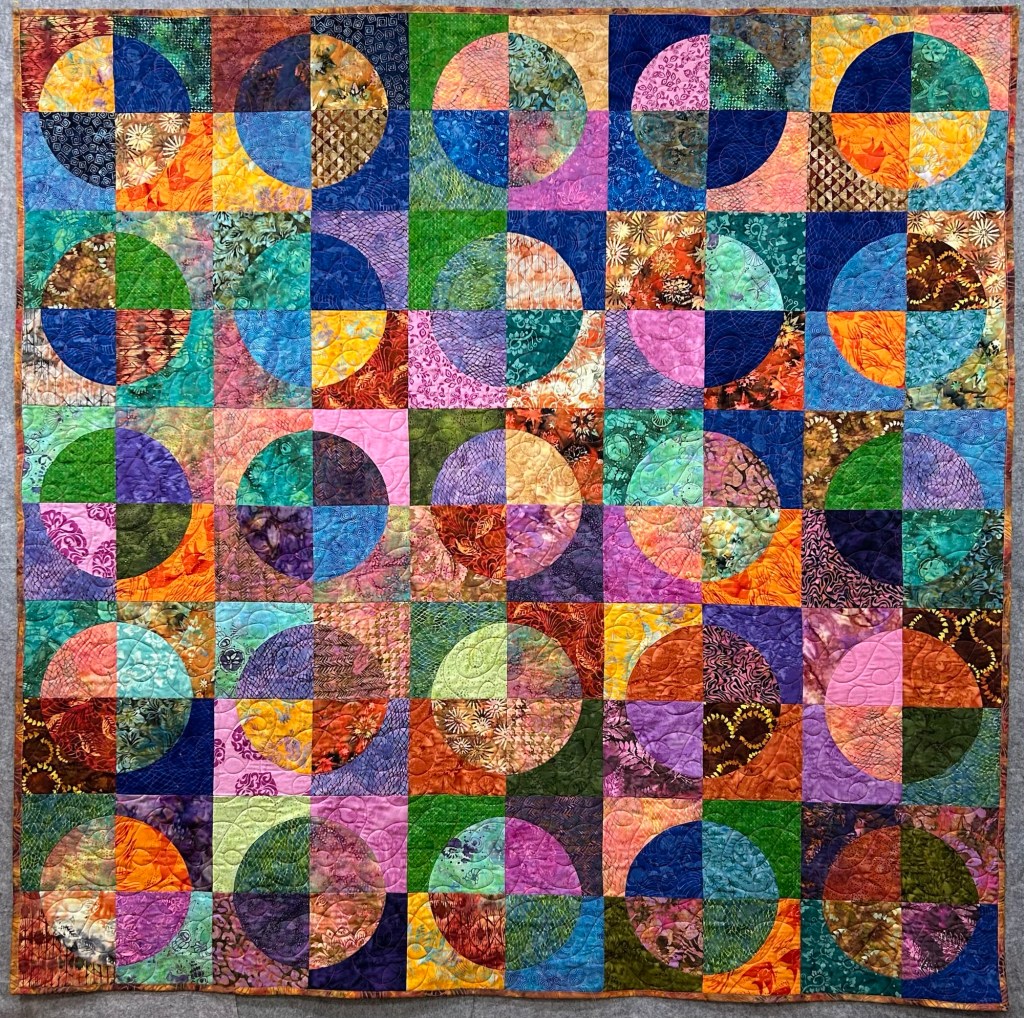 Beautiful Quilt! I love the bright colors. Makes me want to pull out my oriental fabric that I had started with this pattern…so many in the works. I will get to it one day…