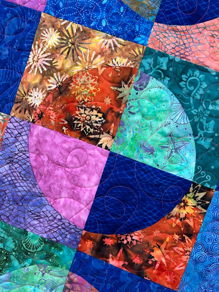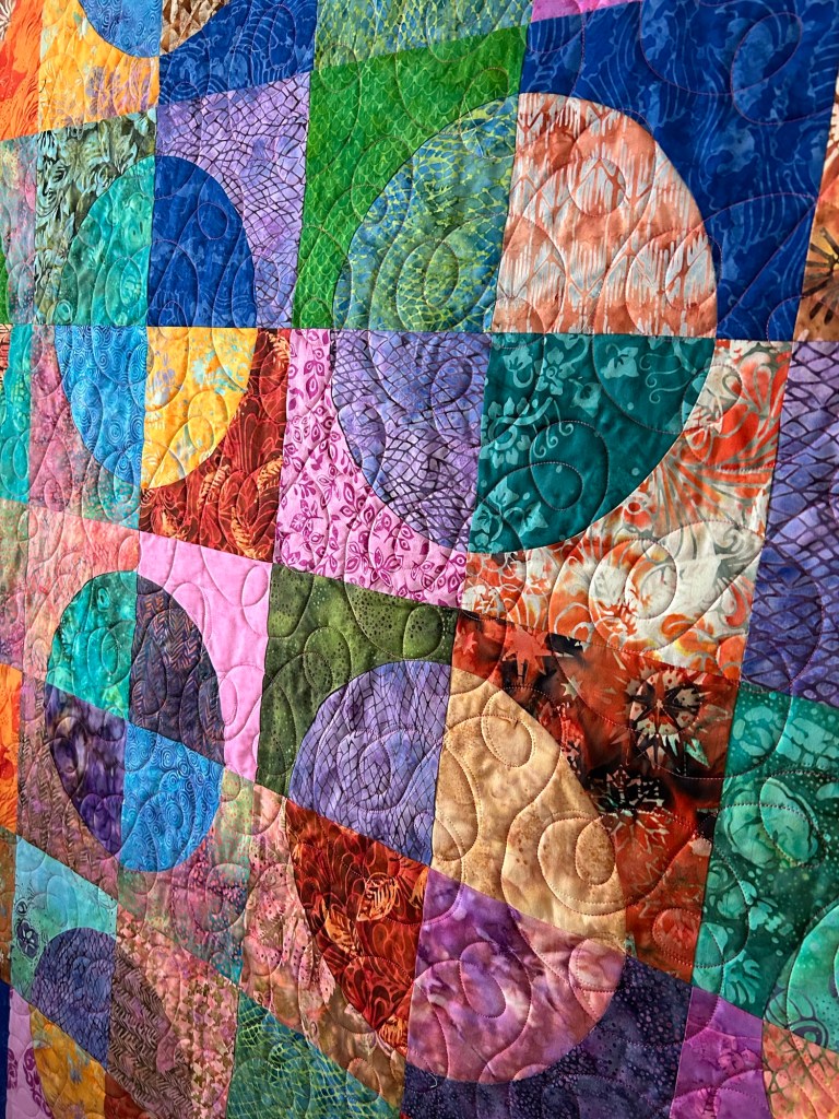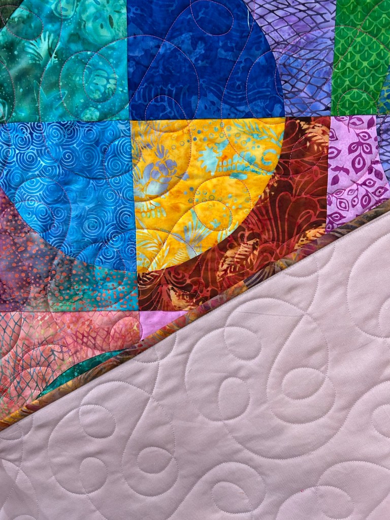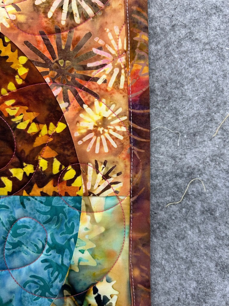 And this strange batik for binding. It has brown, orange, purple, yellow etc in it.