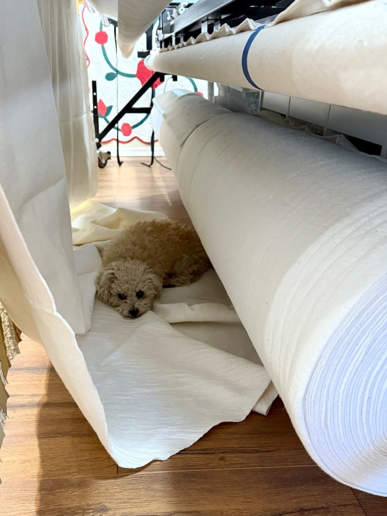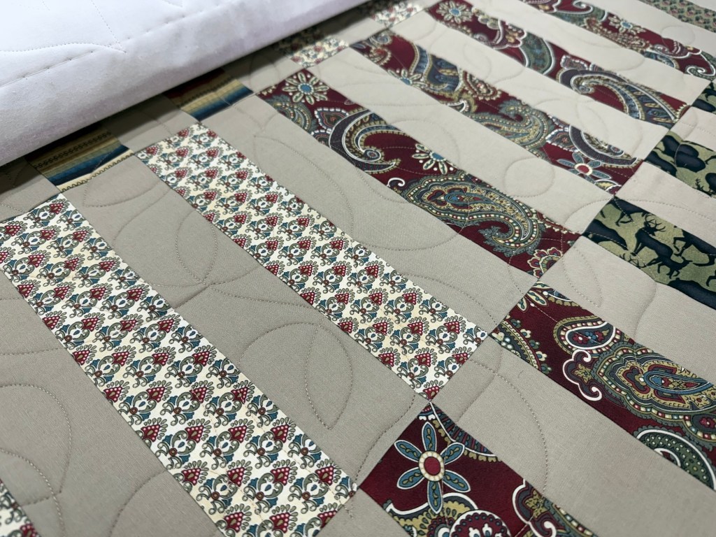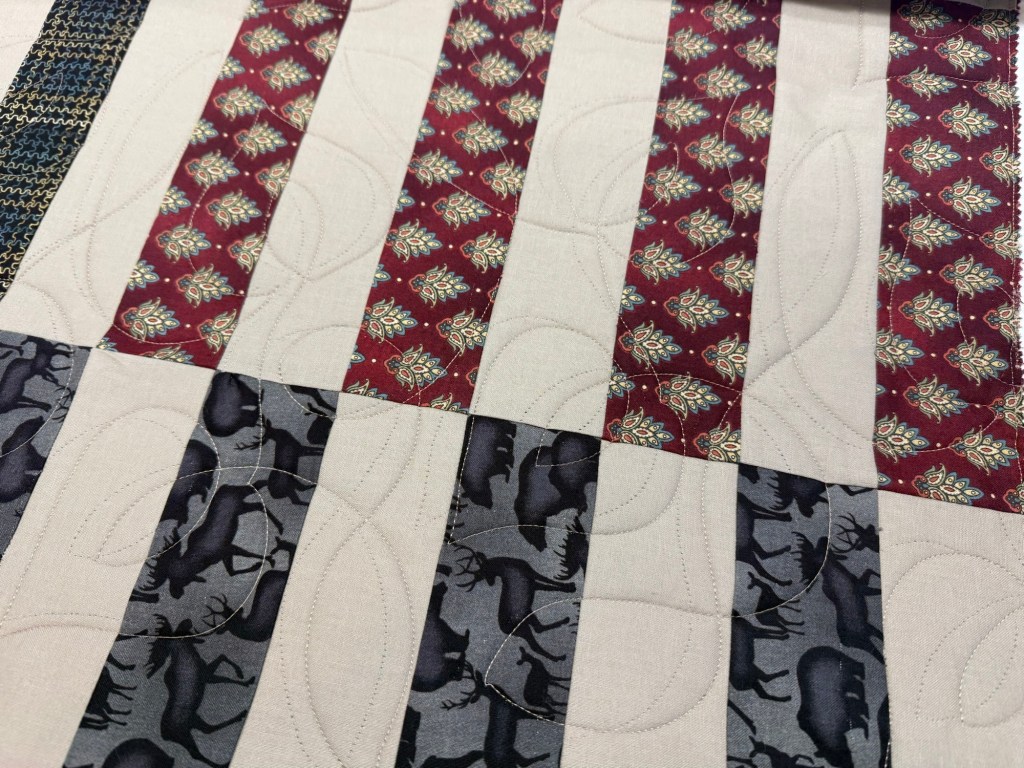 I ran out of bobbin thread and “quilted” half a row without thread. When I redid that area, I had unknowingly shifted the pantograph, leaving this ugly mess.