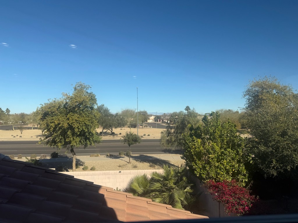 After sewing in a basement for many years, I sure love having windows! And this is my view. There are mountains in the distance.